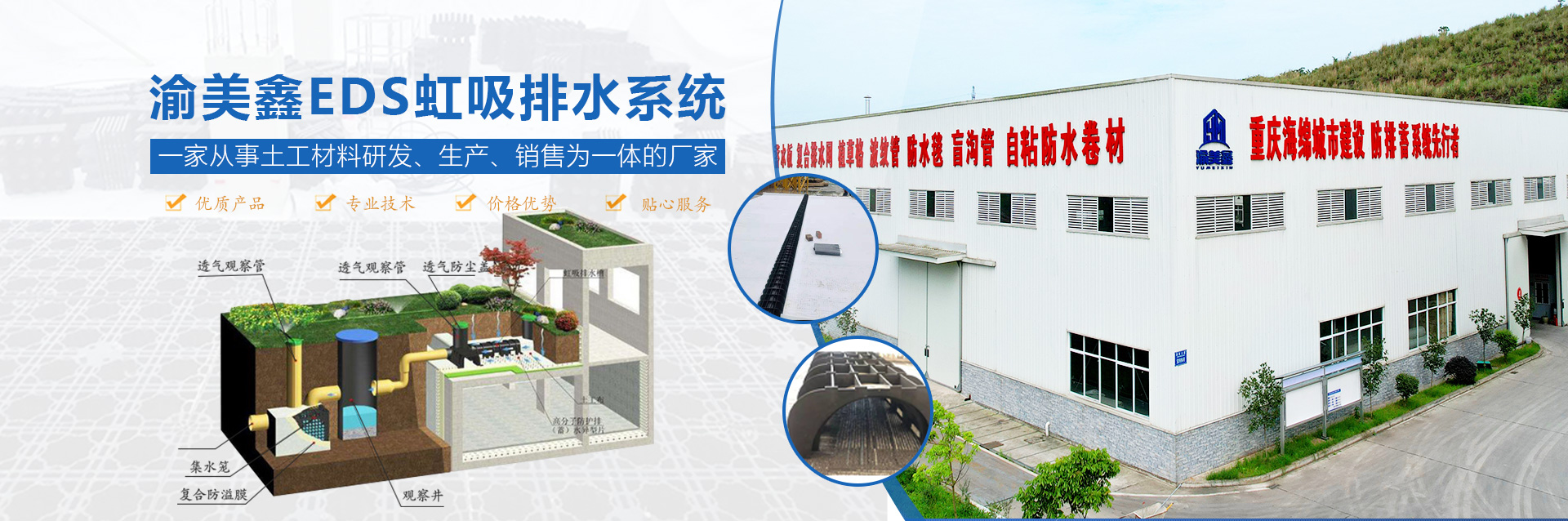 座落于重慶市西南部江津區“中國長壽之鄉”,公司位于德感工業園區平蘭路,占地25842.29平方米,注冊資金100008000元。廠區緊鄰繞城高速德感出口,交通十分便利。公司成立于2017年,是以中國海綿城市產品生產、環保設備生產、環保工程的設計、施工總承包以及環保工程改造為主體的科技型企業;公司主要從事環保技術開發:研發、生產、銷售:土工合成材料、塑料制品、金屬制品、橡膠制品、防水材料、建材、土工布、土工格柵、土工網墊;防腐工程、環保工程、河源政治工程、防水工程、工礦防滲工程設計、施工:銷售:節能產品、機電設備、暖通設備、環保設備:其它水的處理、利用與分配:環境保護專用設備;大氣污染治理;其它污染治理;貨物及技術進出口。